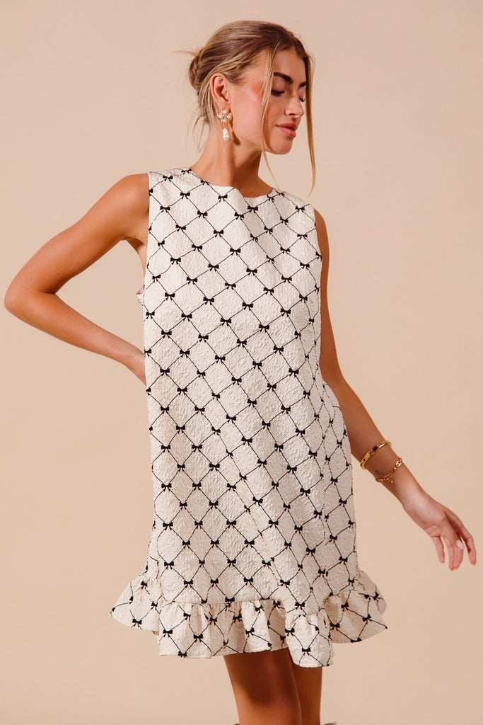 Textured Bow Print Dress