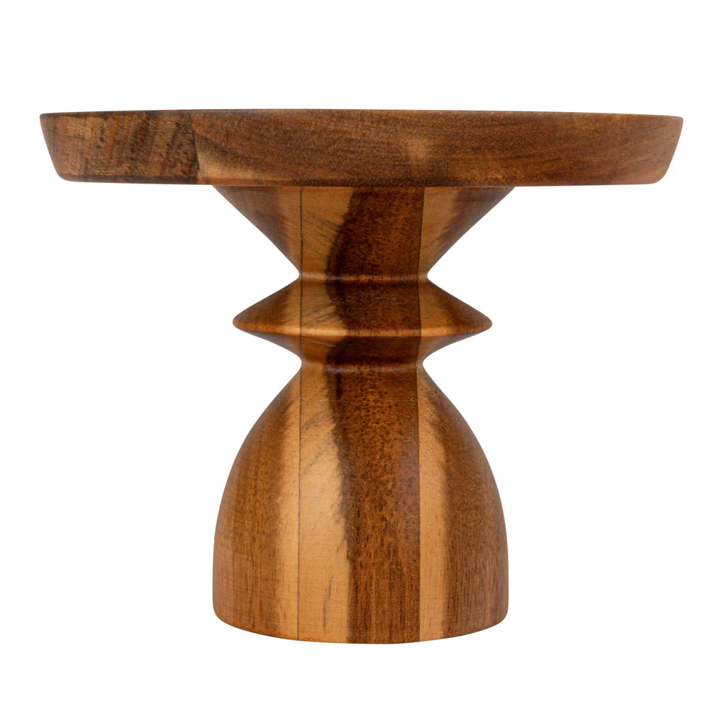 - 6-3/4h stoneware serving dishesw acacia wood pedestals