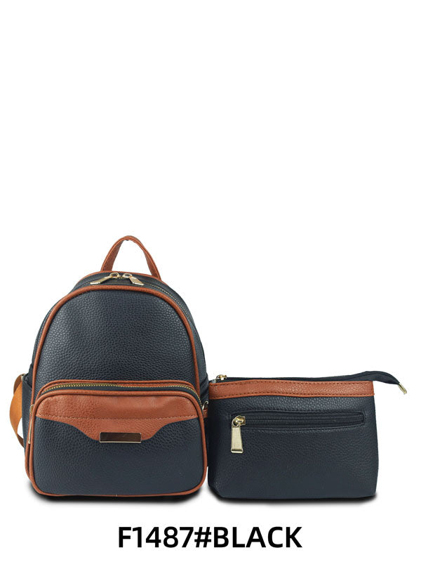 Small Two Toned Backpack With Inner Pouch