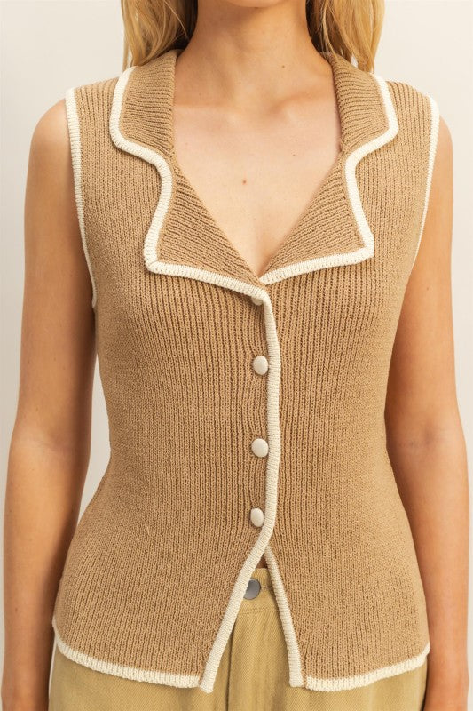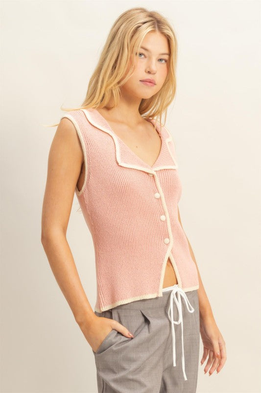 Knit Vest With Contrast Trim