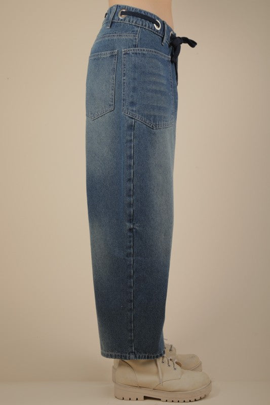 Washed Denim Barrel Jeans