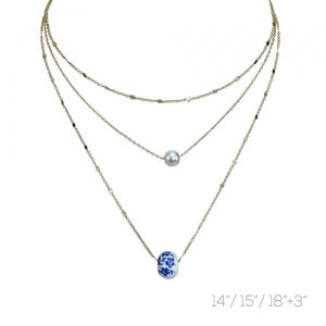 Gold blue bead layered necklace size 0.57x0.68in length 14/15/18+3in