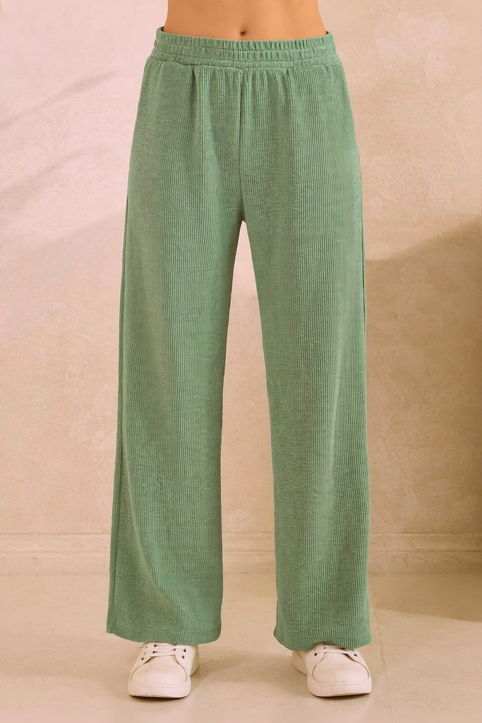Ribbed Wide Legged Bottoms With Pockets