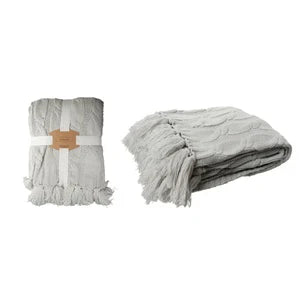Chunky Knitt Light Gray Throw W/tassels