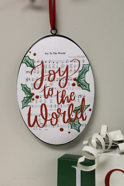 - 6" x 9" Metal oval disc ornament "Joy to the World"