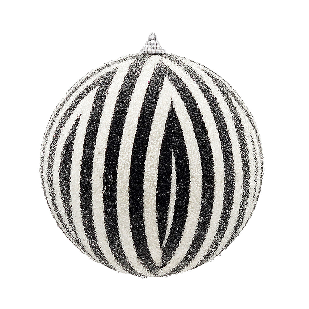 Sm Black & White Iced Ball Ornament