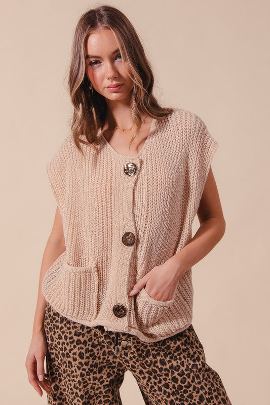 Button Front Sweater Vest