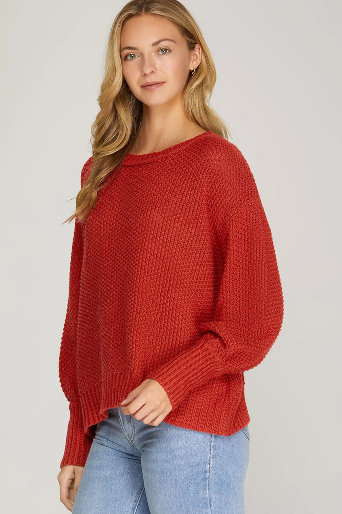 Waffle Knit Crew Neck Sweater