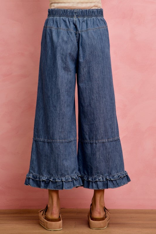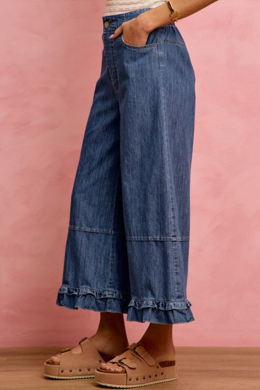 Wide Leg Ruffled Hem Jeans