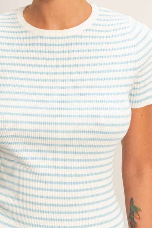 Striped Ribbed Crew Neck Top